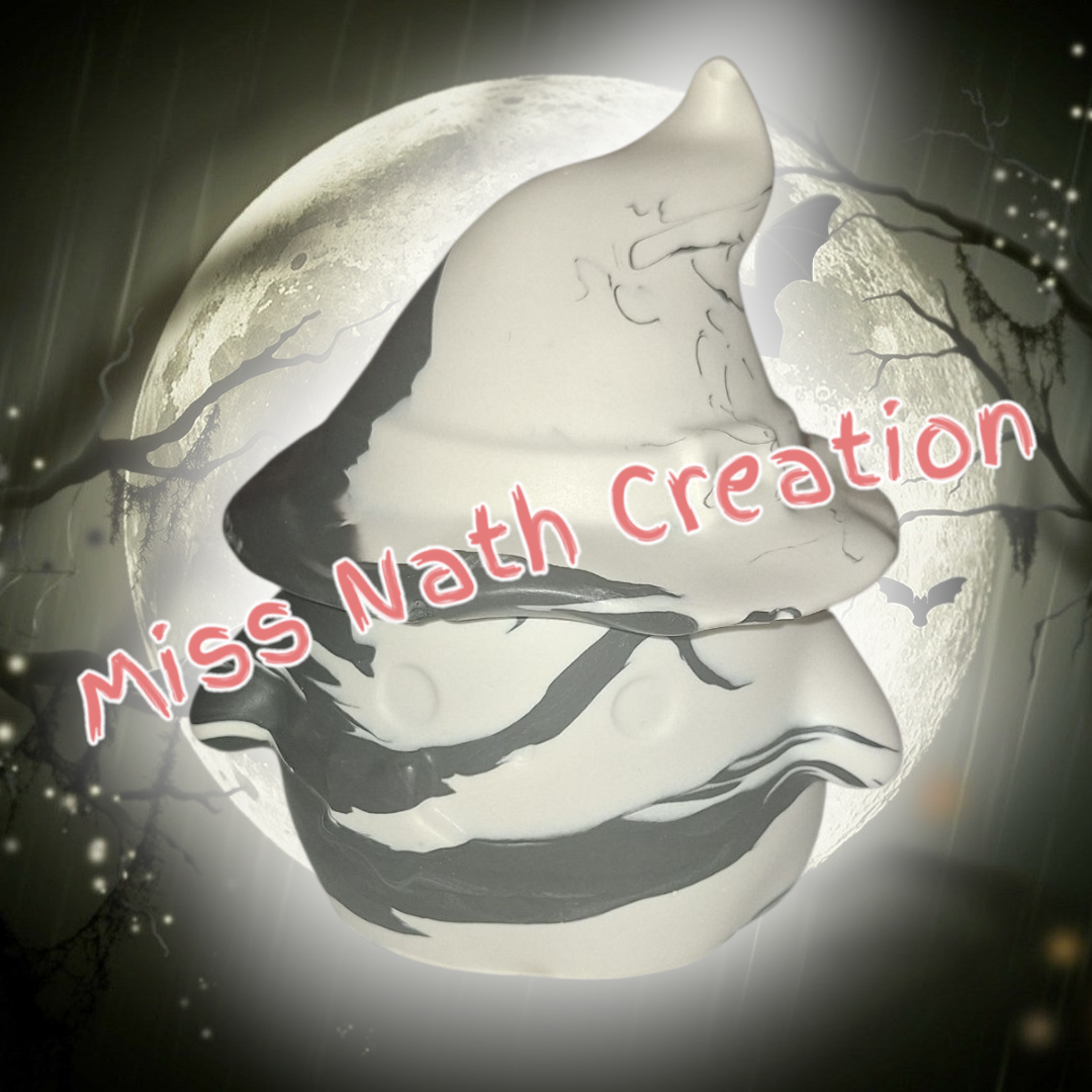 Ce fantôme en jesmonite, conçu avec précision, sert également de bougie décorative.