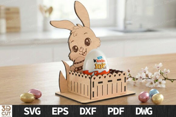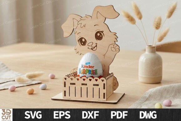 Joli support décoratif en bois naturel, découpé et gravé au laser, conçu pour accueillir un œuf surprise type Kinder.