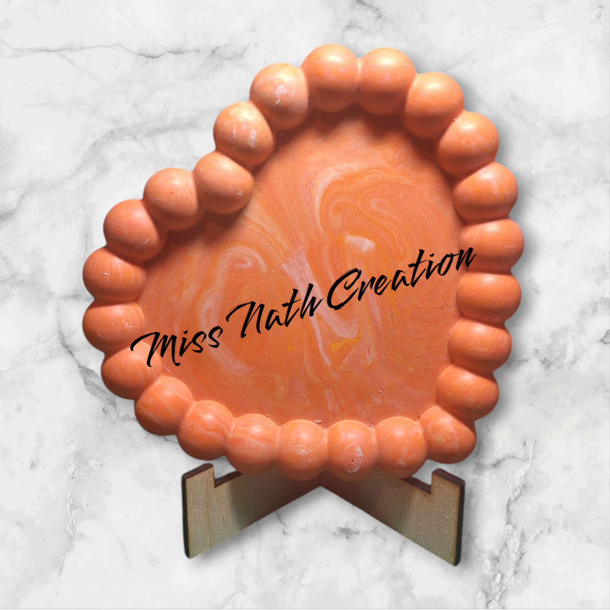 Plateau cœur en Jesmonite – Contour perlé marbré orange